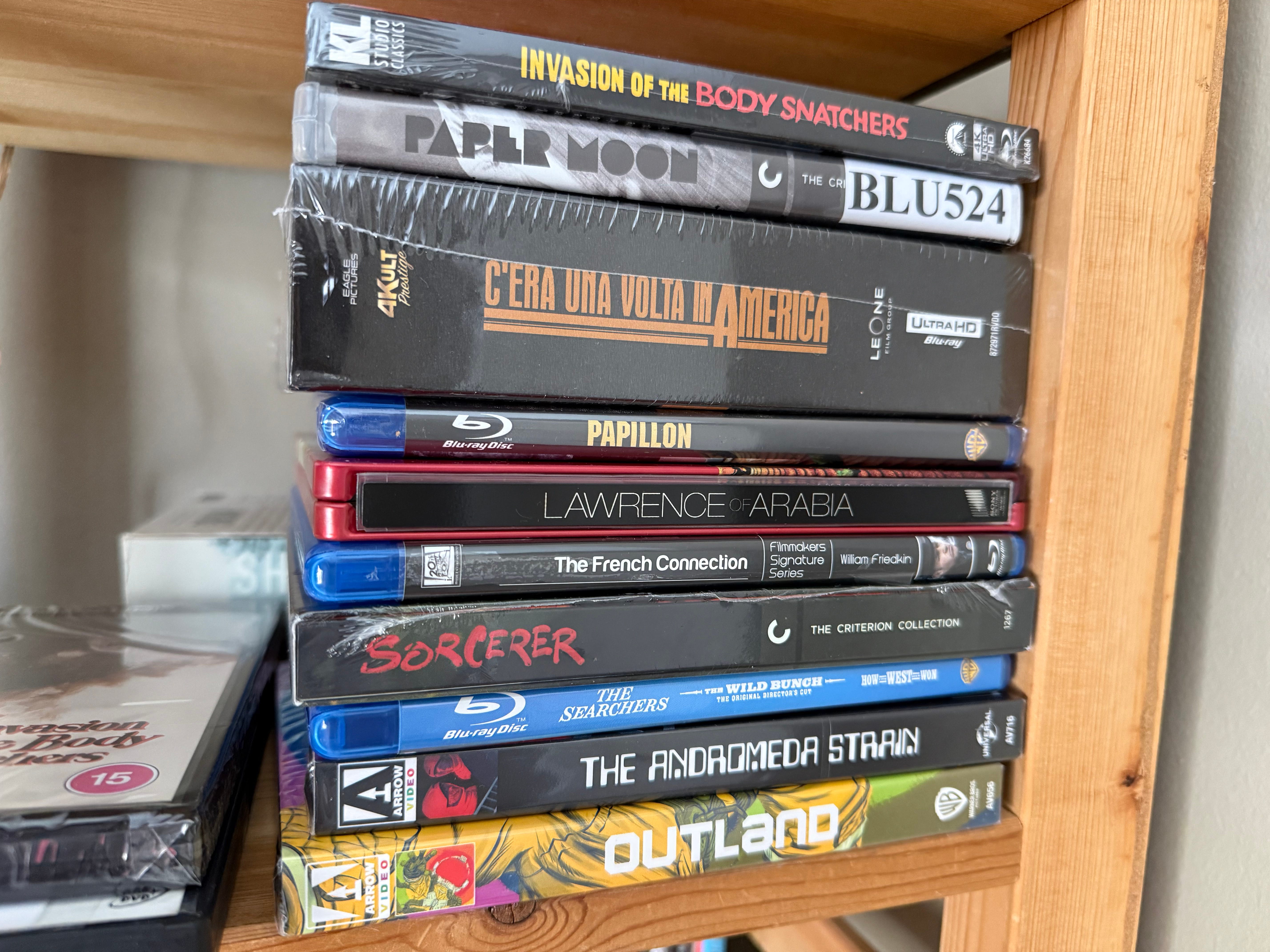 The thick box with Italian title is the film Once Upon a Time in America. It was one of my father’s favorite films, and I wanted to rewatch it. Turns out, the director’s cut is difficult to find on Blu-ray. But then I discovered a label in Italy just remastered it in 4k. So I ordered it directly from Italy, spending way more than I ever spent for an individual film. It’s a way of honoring an experience my father appreciated, and also seeing the absolute best version of the film that anyone has seen since it was in theaters since 1984. Is it ridiculous for me to spend $100 on this? Maybe. But part of me is viewing it as going to the movies with my dad again. Maybe that’s ridiculous too, but this is who I am.