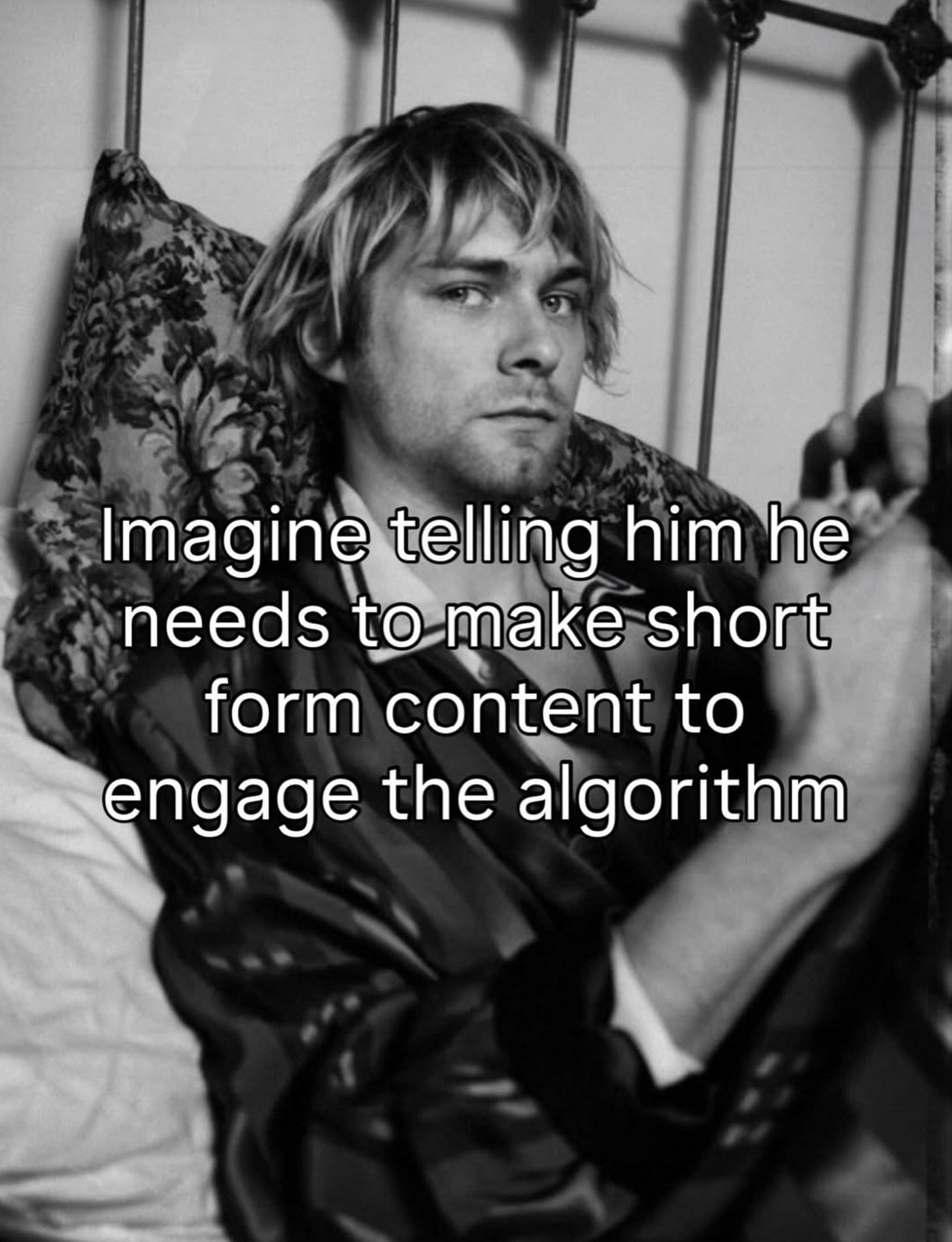 Reducing Kurt to a meme seems to encourage musicians/writers/artists working today to feel a sense of shame and self-consciousness about sharing or marketing their work. That somehow, they are the “bad, inauthentic, sell-out” if they promote their creative work online, because “Kurt never would.”